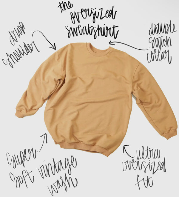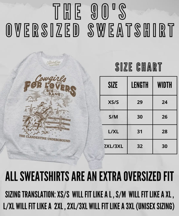 - Printed on a soft, 90's style oversized crewneck sweatshirt