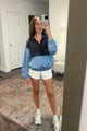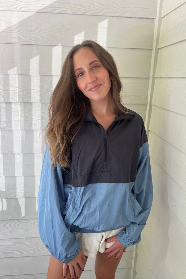 Stay stylish and comfortable in our Reeves Colorblock Windbreaker. With a modern colorblock design, a convenient front kangaroo pocket, and a quarter zip for easy on and off, this windbreaker is perfect for any outdoor adventure.