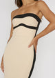 Make jaws drop in the stunning Drew maxi dress! Features an elegant, strapless style and contrasting color trim. Perfect for any special occasion! Pair it with a nude strappy heal and a clutch for a gorgeous look!