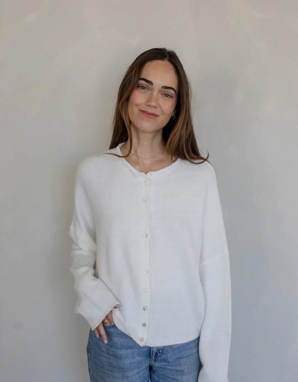 This cardi is a year round staple! It is so soft with the perfect amount of slouch & pearl white buttons!