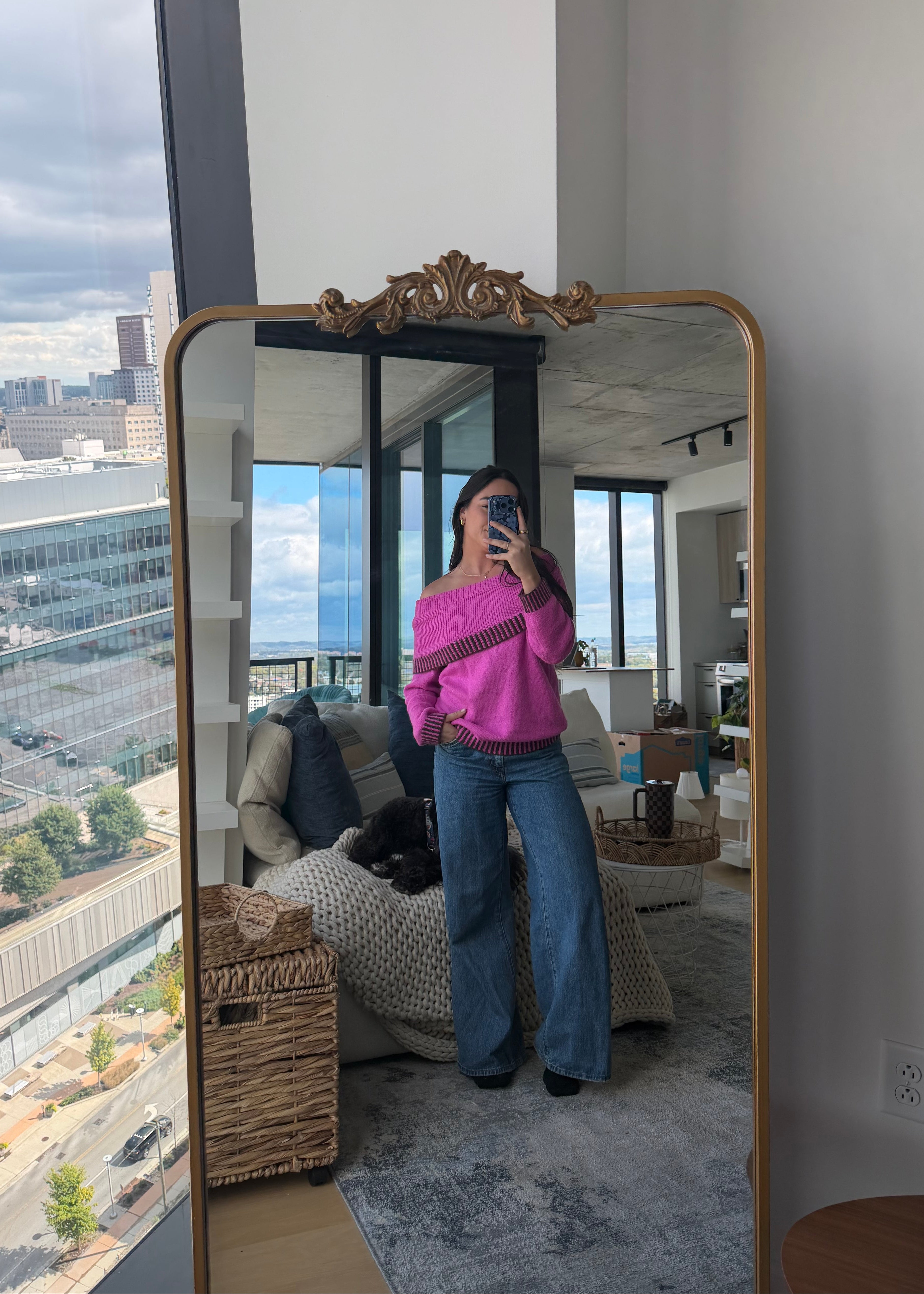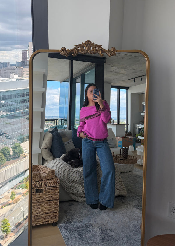 Experience comfort and style in our Joanna Off The Shoulder Sweater! The off the shoulder neckline and relaxed fit offer a casual yet chic look, while the brown stripe accents and ribbed cuffs add a touch of sophistication. Made with soft knit material, this sweater is perfect for any occasion.
