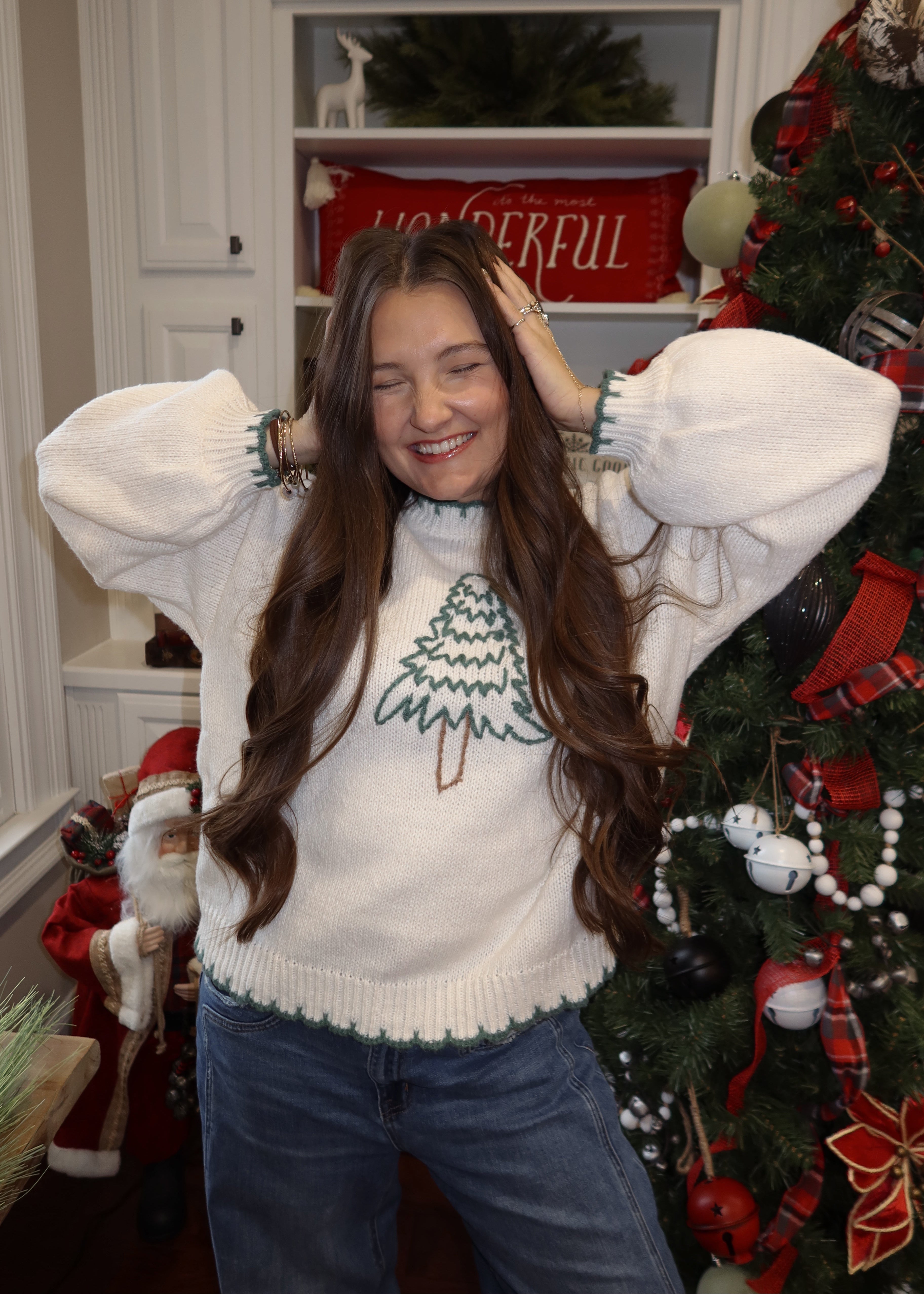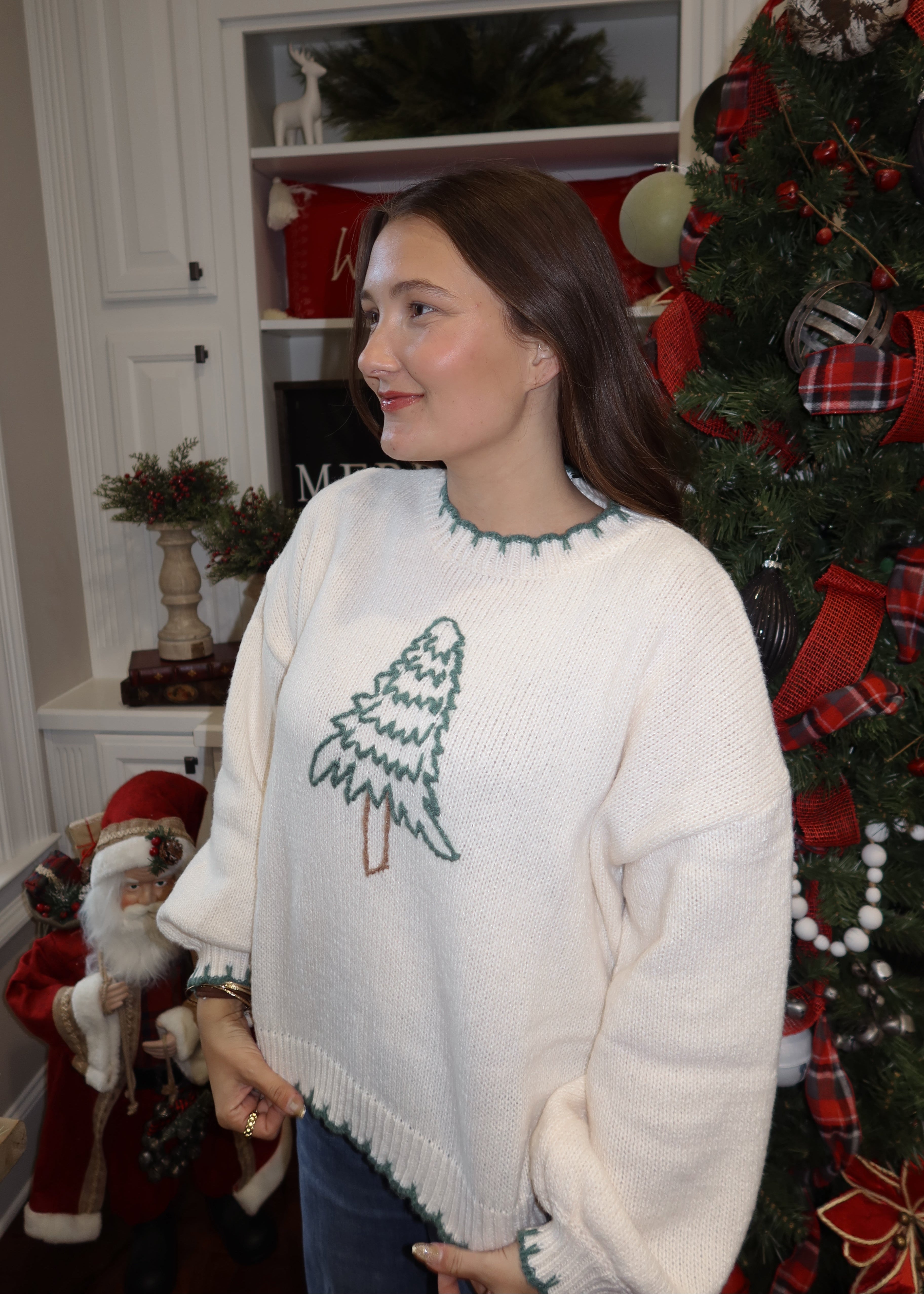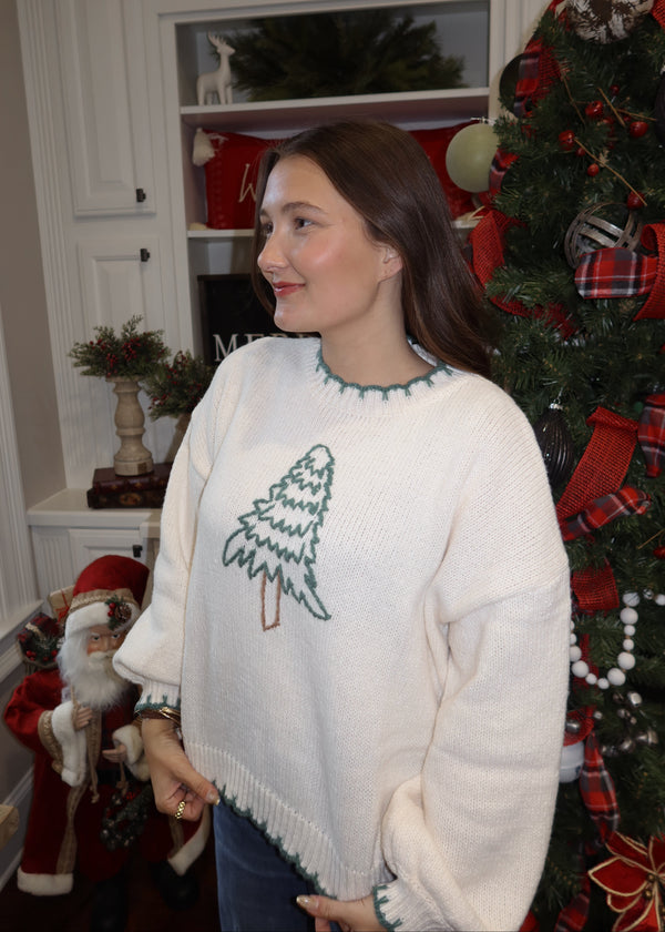 Wrap yourself in festive cheer with our Christmas Tree Farm Knit Sweater! This cozy oversized sweater features Christmas tree stitching that will make you stand out at every holiday party!