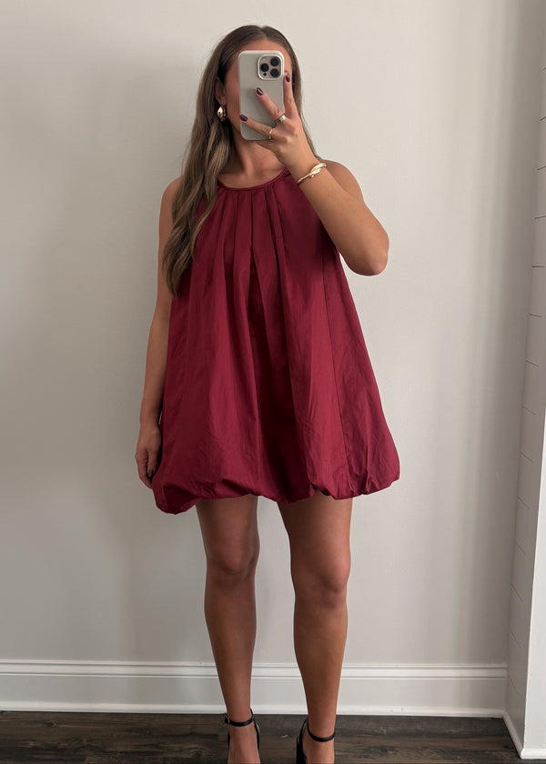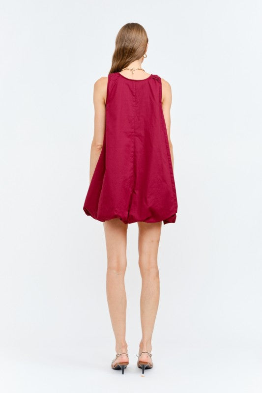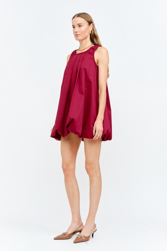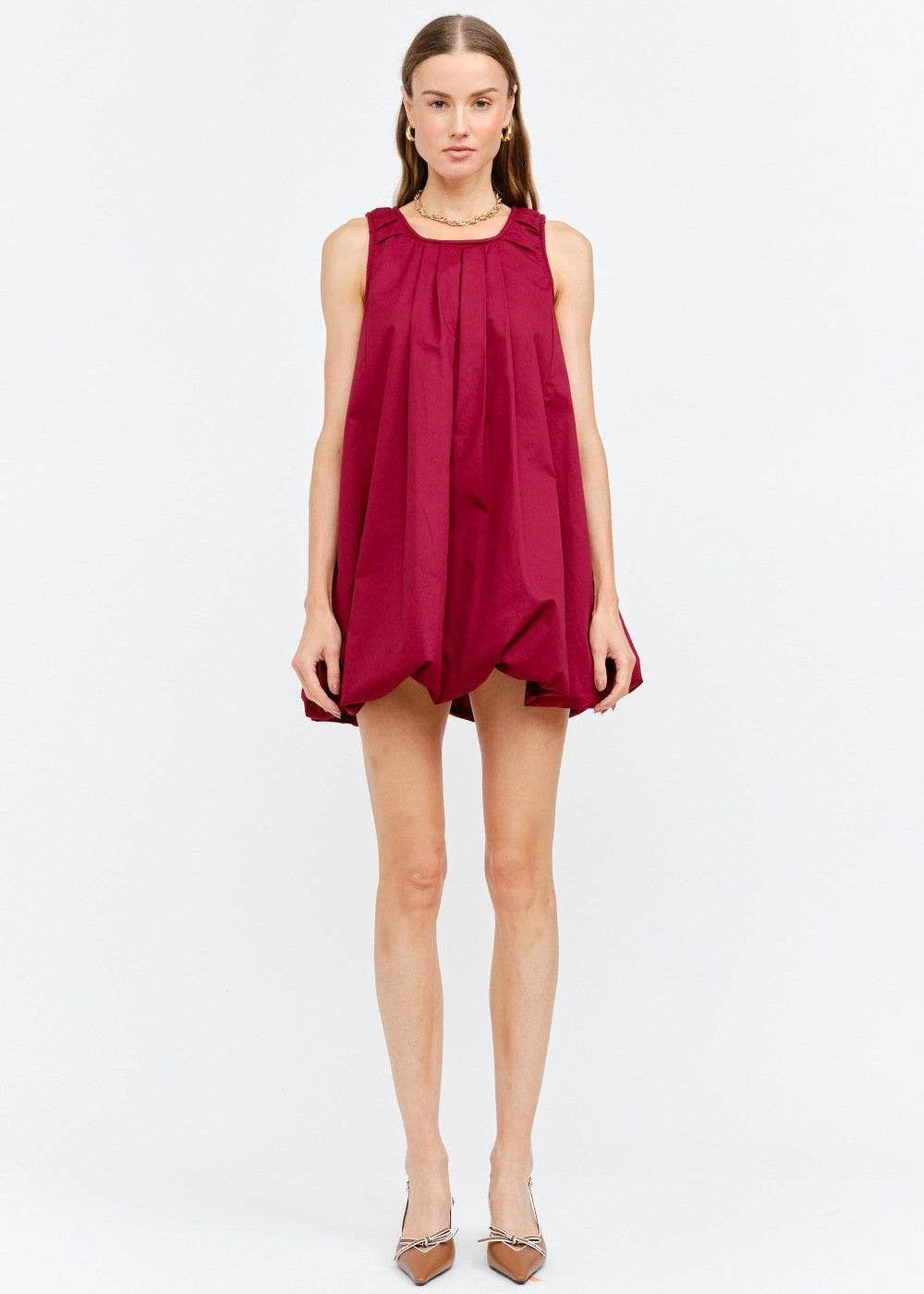 A playful mini with a voluminous bubble hem silhouette. Designed sleeveless with gathered detailing at the neckline, this style creates a floaty, modern shape that's both bold and easy to wear. (+ pockets!!)