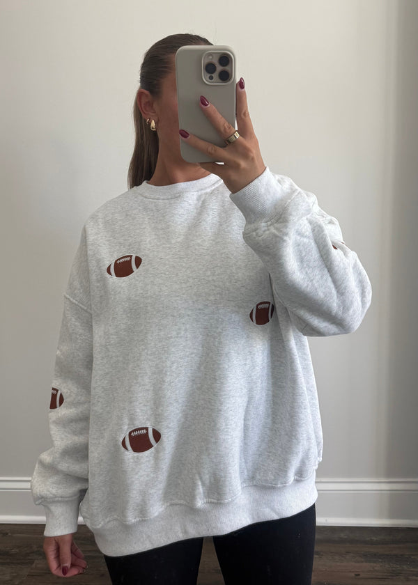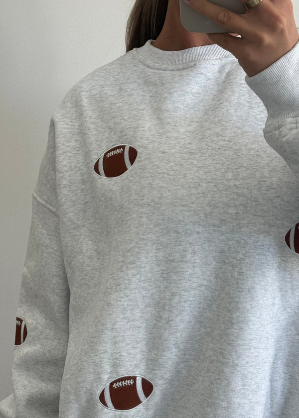 Football Embroidered Crewneck - L is backordered and will ship as soon as it is back in stock.